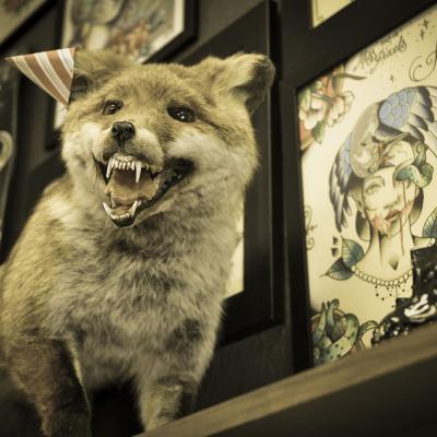 We have 3 studios laid out over 2 floors. There are four tattoo stations on the ground floor largely dedicated to realism, black and grey, blackwork and traditional and a walk- in service for smaller tattoos, as well as a second tattoo studio with two stations on the lower ground floor which provides a more private space. Sister company Punctured Soul body piercing and laser removal suite is also housed on the lower ground floor.